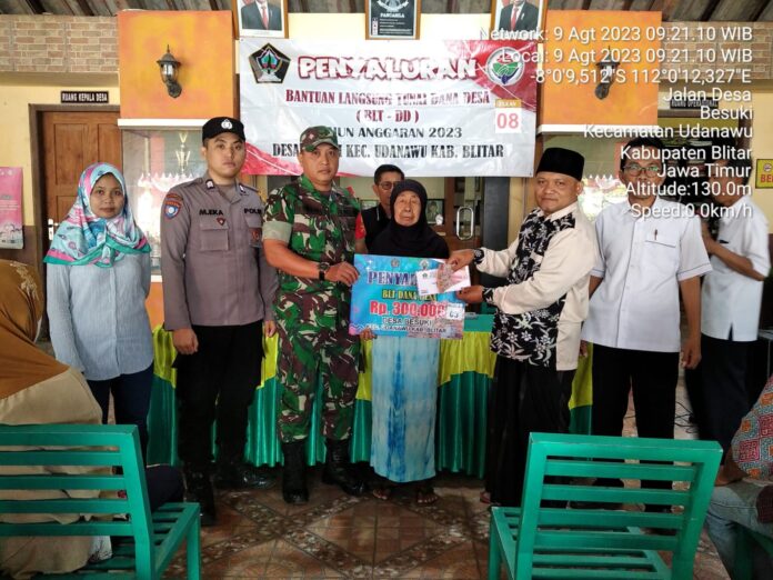 globalcybernews.com-Blitar – Babinsa Koramil 0808/08 Udanawu Kodim 0808/Blitar Serda Asnawi bersama Bhabinkamtibmas, melaksanakan kegiatan pendampingan penyaluran Bantuan Langsung Tunai Dana Desa (BLT DD) kepada warga masyarakat kurang mampu yang ada di wilayah binaannya.