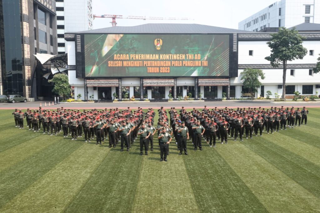 globalcybernews.com-JAKARTA,- Kepala Staf Angkatan Darat (Kasad) Jenderal TNI Dr. Dudung Abdurachman mengapresiasi keberhasilan Kontingen TNI Angkatan Darat yang telah berhasil mempertahankan predikat Juara Umum, serta kembali memboyong Piala Bergilir dan Piala Tetap Panglima TNI untuk ke-16 kalinya. Untuk itu, Kasad menggelar acara khusus untuk menyampaikan apresiasinya kepada Kontingen TNI AD yang berjumlah 257 orang, terdiri dari para atlet, pelatih dan official, bertempat di Lapangan Upacara Mabesad Jakarta, Senin (14/8/2023).