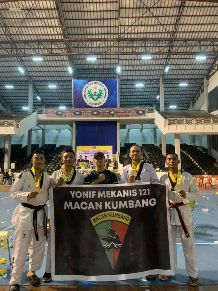 globalcybernews.com-Medan – Prajurit Yonif Mekanis 121/Macam Kumbang kembali menorehkan prestasi gemilang di dunia olah raga tanah air dengan menyabet empat medali pada Kejurnas Taekwondo Piala Menpora 2023.