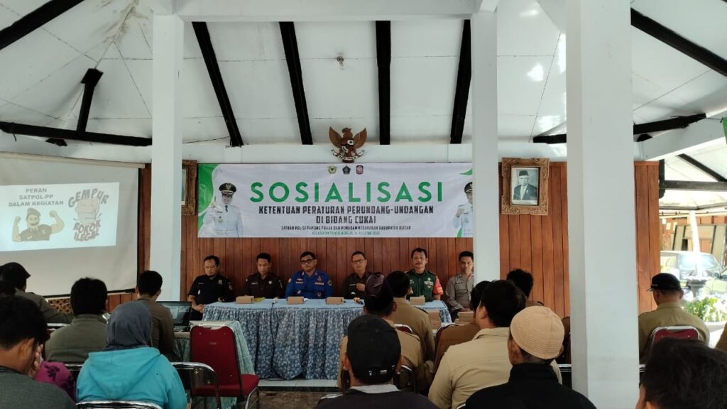 Senin (14/8/2023) Satpol PP dan DAMKAR Kabupaten Blitar kembali melakukan sosialisasi perundang-undangan di bidang cukai untuk mensukseskan program gempur rokok illegal. Kegiatan sosialisasi bertempat di Pendopo Kecamatan Panggungrejo Kabupaten Blitar.