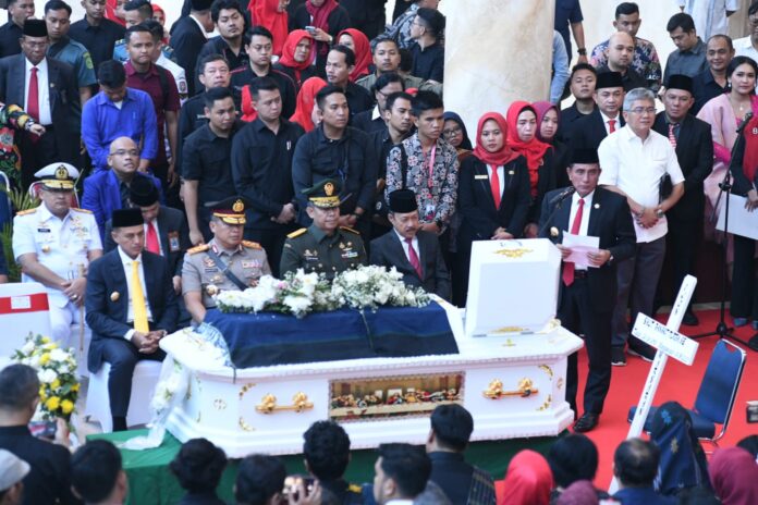 Turut hadir Wakil Gubernur Sumut Musa Rajekshah, Forkopimda Sumut, Sekdaprov Sumut Arif S Trinugroho dan sejumlah pimpinan OPD di Lingkungan Pemprov Sumut untuk memberikan penghormatan yang terakhir.
