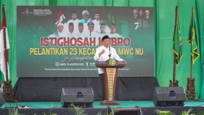 Plt Bupati Langkat H.Syah Afandin,SH bersama Wakil Ketua Umum PB Nahdlatul Ulama (NU) KH. Zulfa Mustofa hadiri acara Istighosah Kubro dan Pelantikan 23 MWC Nahdlatul Ulama Kecamatan se-Kabupaten Langkat, bertempat di Lap. Alun-Alun T. Amir Hamzah Stabat, Sabtu 19 Agustus 2023.