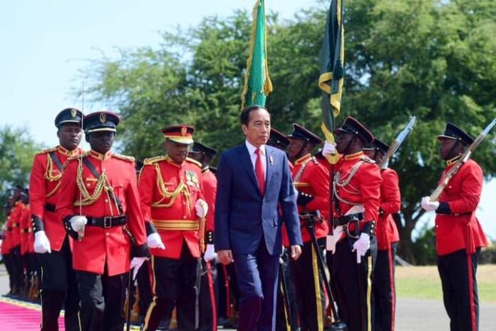 globalcybernews.com-Kunjungan kenegaraan Presiden Joko Widodo ke kawasan Afrika dilanjutkan dengan mengunjungi Dar Es Salaam, Republik Persatuan Tanzania. Kunjungan ini menjadi kunjungan pertama Presiden Indonesia ke Tanzania dalam 30 tahun terakhir setelah kunjungan Presiden Soeharto di tahun 1991.