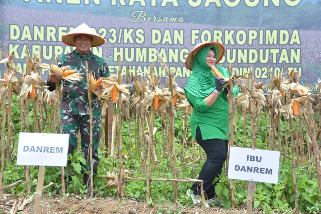 globalcybernews.com-Humbahas. Komandan Korem 023/KS Kolonel Inf Lukman Hakim, Ketua Persit KCK Koorcabrem 023 PD I/BB didamping Dandim 0210/TU Letkol Inf Saiful Rizal Melaksanakan Panen Raya Jagung di Desa Hutasoit I Kecamatan Lintongnihuta Kabupaten Humbahas Rabu (30/08/2023)