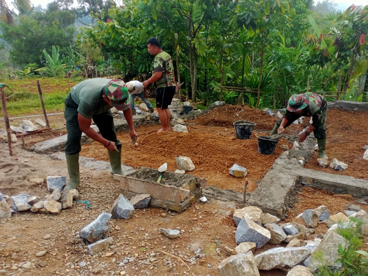 Terlihat Sertu Darman anggota Satgas pra-TMMD ke-118 Kodim 0309/Solok saat bersama-sama dengan warga Jorong Buah Jambu Nagari Tanjung Alai memasang pondasi pembangunan salah satu Rumah Tidak Layak Huni (RTLH) yang menjadi sasaran TMMD reguler ke 112 yang direncanakan dibuka pada tanggal 20 September 2023.