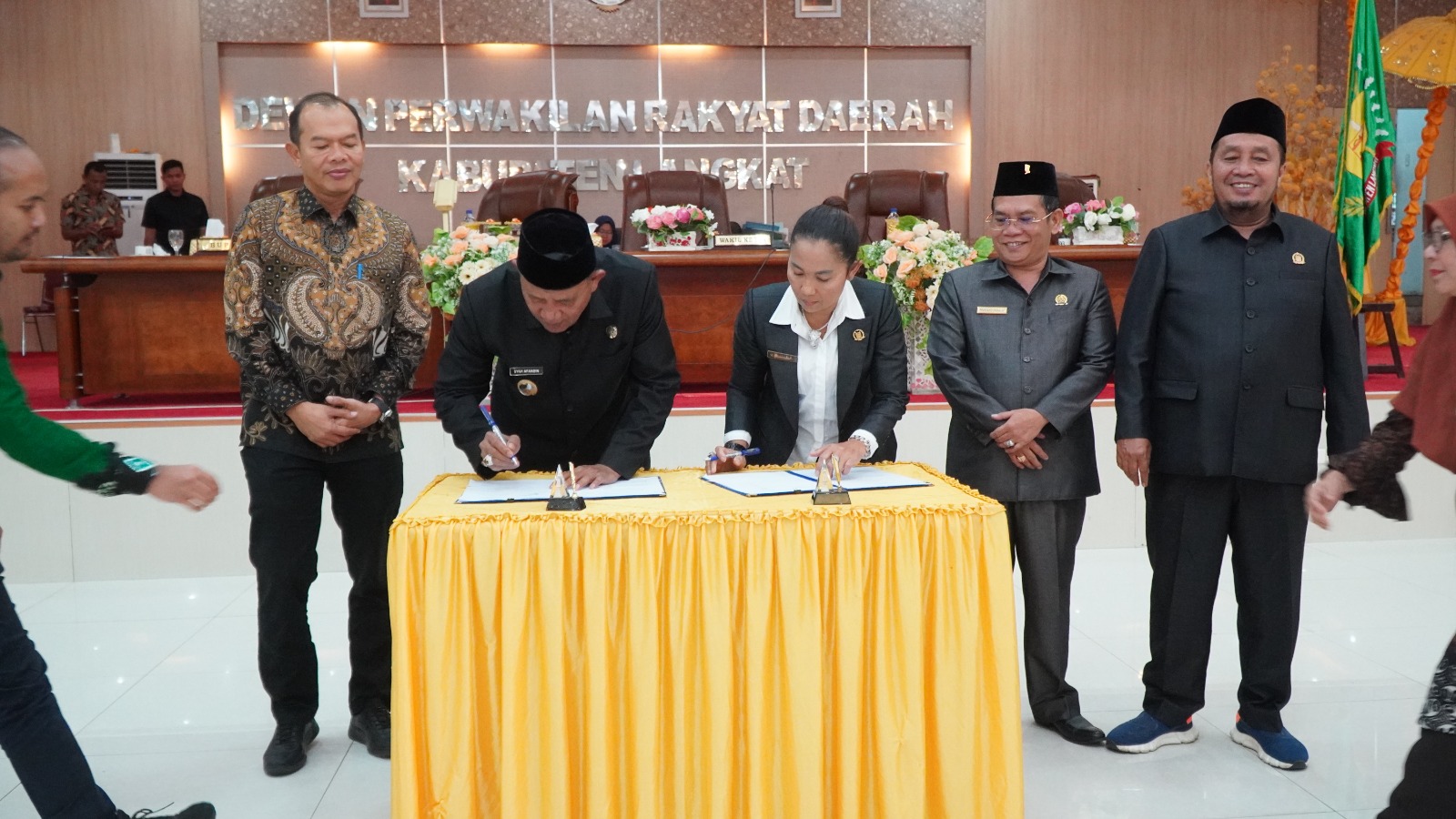 Pengesahan ditandai, Plt Bupati Langkat di dampingi Sekdakab Langkat H.Amril, S.Sos, M.AP dan seluruh pimpinan DPRD Kabupaten Langkat menandatangi surat keputusan dan berita acara persetujuan bersama terhadap Peraturan Daerah tentang perubahan APBD Kabupaten Langkat tahun anggaran 2023.