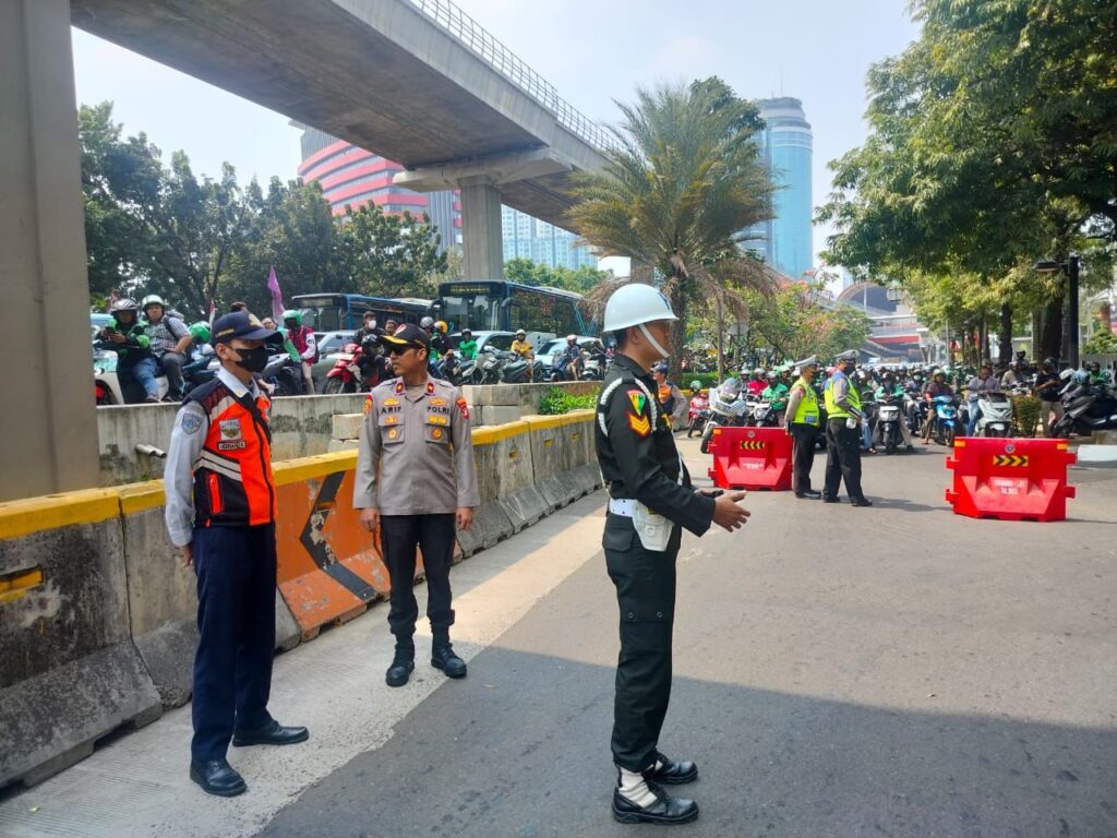 globalcybernew.com-Setiabudi – Kapolsek Metro Setiabudi Kompol Arif Purnama Oktora terjun langsung menertibkan arus lalu lintas di Jalan Kuningan saat pengalihan arus KTT ASEAN ke-43.