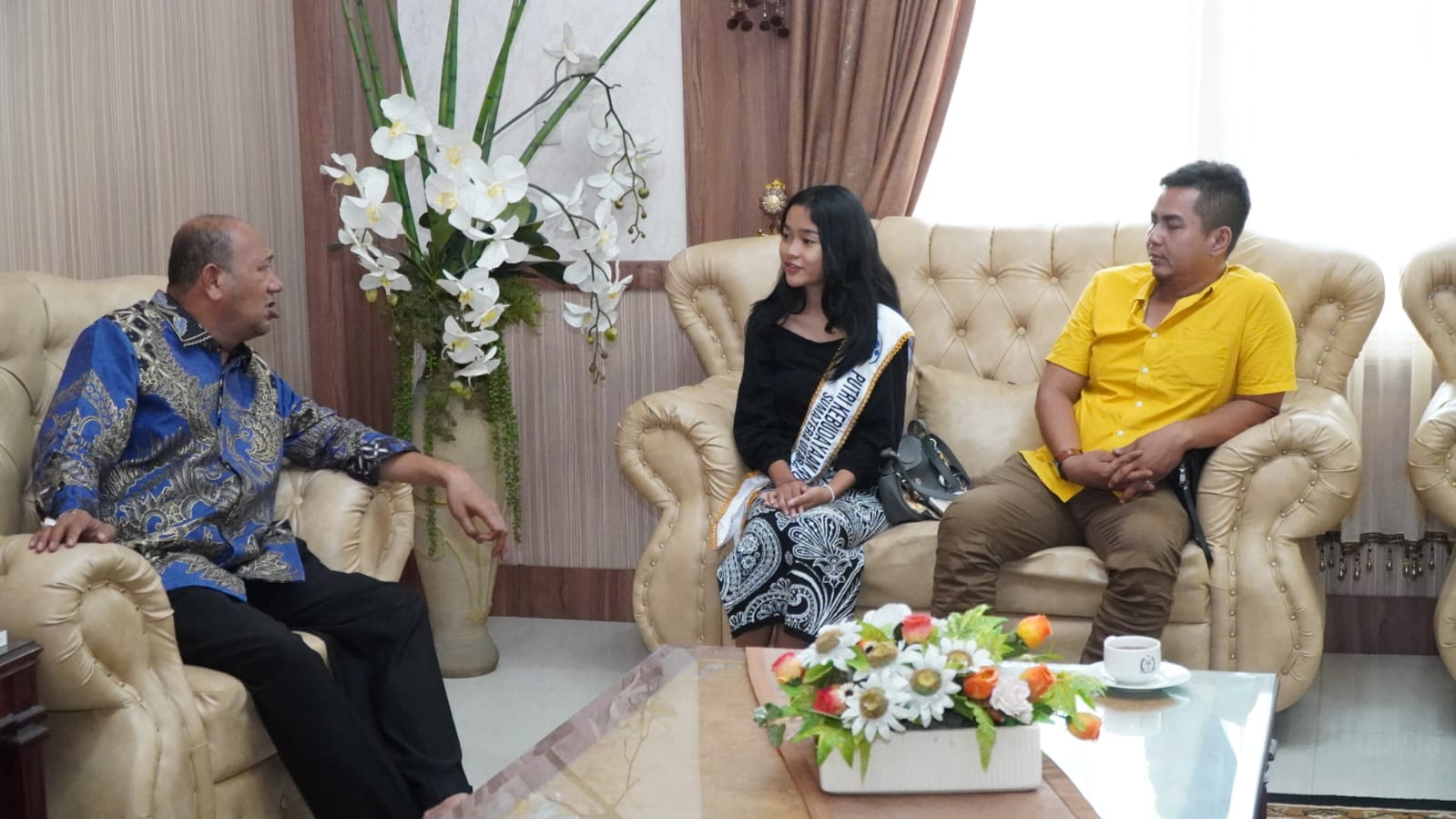 Plt Bupati Langkat H.Syah Afandin SH menerima kedatangan Haga Natasyah Ndraha (17) finalis Putri Kebudayaan Nusantara, bertempat rumah dinas Bupati Langkat, Kamis 7 September 2023.