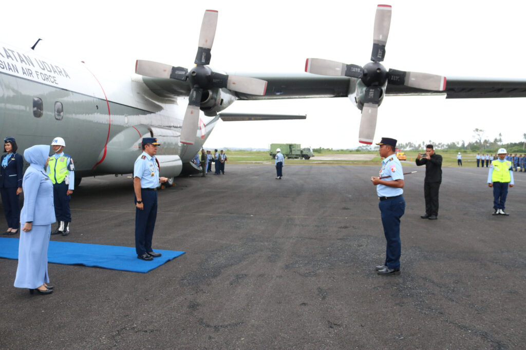 Kedatangan Pangkoopsud I dan rombongan disambut langsung oleh Danlanud RSA Kolonel Pnb Dedy Iskandar, S.Sos., M.M.S., M.Han., dan Ketua PIA Ardhya Garini Cab.17/D.I Lanud RSA Ny. Santi Dedy Iskandar beserta segenap jajaran personel Lanud RSA, bertempat di Main Apron Lanud RSA, Kabupaten Natuna. (Selasa, 12-9-2023).