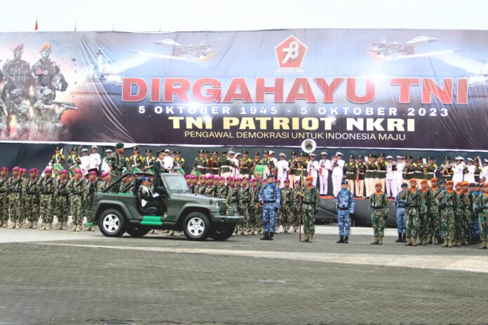 “TNI juga berkomitmen menjamin keamanan dan kelancaran dalam rangka mewujudkan Pemilu 2024 berlangsung aman, damai dan sejuk,” kata Mochammad Hasan sebagai Inspektur Upacara saat membacakan pidato Panglima TNI Laksamana Yudo Margono.