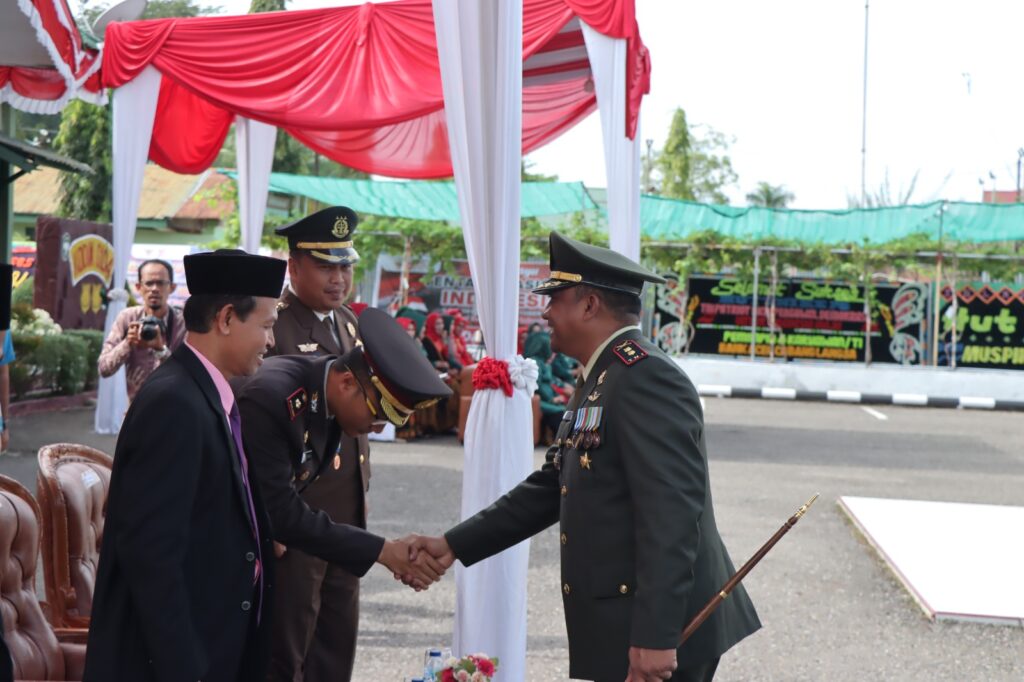 Langsa – Upacara memperingati Hari Ulang Tahun Tentara Nasional Indonesia (HUT TNI) ke-78 tingkat Kodim 0104/Aceh Timur yang digelar di Makodim, Jln. Jenderal Ahmad Yani, Gp. Payabujok Seuleumak, Kec. Langsa Baro, Kota Langsa, Kamis (05-10-2023).