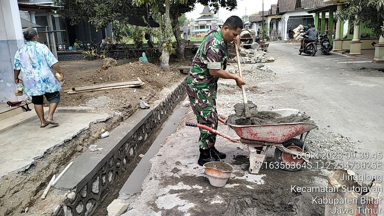 globalcybernews.com – Blitar – Babinsa Koramil 0808/09 Sutojayan Kodim 0808/Blitar Sertu Matraji bersama warga masyarakat, melaksanakan kegiatan kerja bakti dan gotong royong membangun pelebaran saluran air, bertempat di RT.01 RW.05 Lingk. Jingglong Kel. Jingglong Kec. Sutojayan Kab. Blitar, Jumat (6/10/2023).