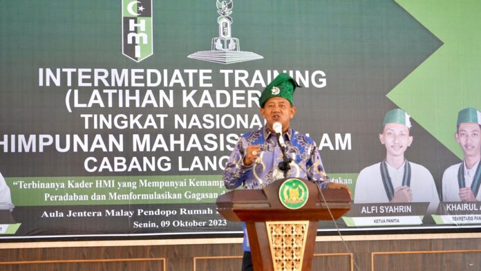 Plt Bupati Langkat H.Syah Afandin SH menghadiri Intermediate Training (Latihan Kader ll) Tingkat Nasional Himpunan Mahasiswa Islam (HMI) Cabang Langkat, bertempat di Jentera Malay Rumah Dinas Bupati Langkat, Senin (9/10/2023).