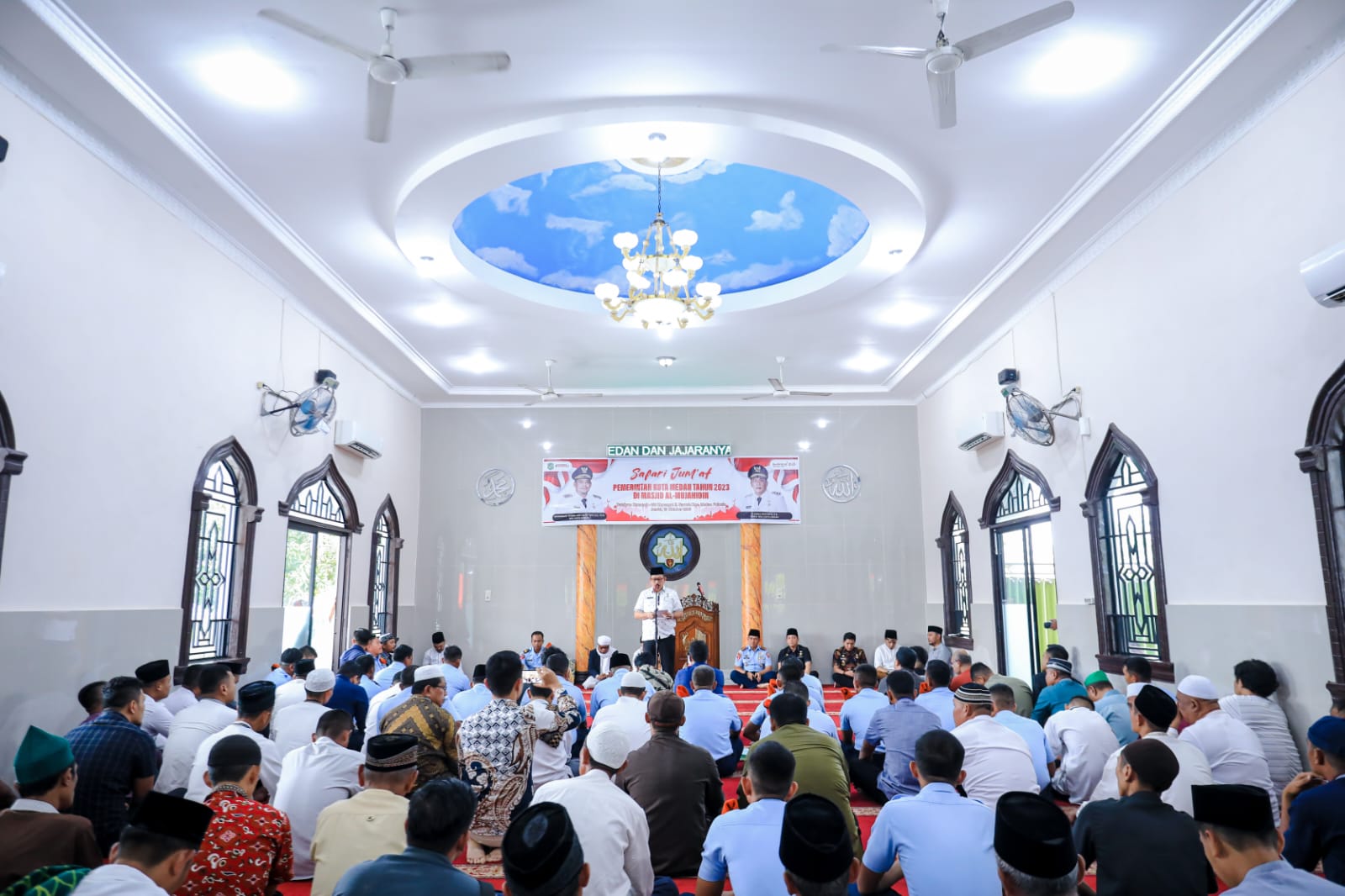 globalcybernews.com-Pemko Medan kembali melaksanakan program Safari Jumat untuk bersilaturahmi dan salat Jumat berjamaah dengan masyarakat yang ada di Kota Medan. Mesjid Al Mujahidin di Batalyon Komando-469 Kopasgat jalan Garuda, Kecamatan Medan Polonia, menjadi tempat kunjungan tim Safari Pemko Medan, Jumat (13/10/2023).