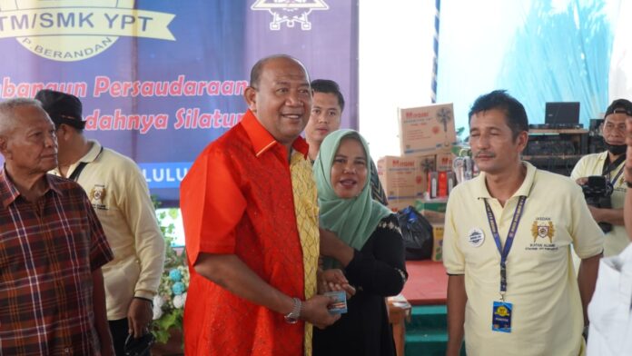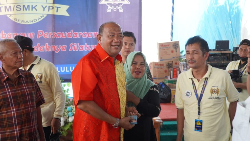 Plt Bupati Langkat H.Syah Afandin SH menghadiri reuni akbar Ke 6 Tahun 2023 STM/SMK YPT Pangkalan Brandan Tahun Angkatan 1970 sampai 2022, bertempat di Gedung SMK YPT Pkl. Brandan, Sabtu 21 Oktober 2023.