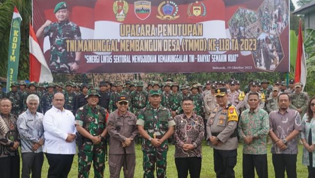 Upacara penutupan TNI Manunggal Membangun Desa (TMMD) Ke-118 Tahun 2023 ini mengusung Tema “Sinergi Lintas Sektoral Mewujudkan Kemanunggalan TNI – Rakyat Semakin Kuat”.