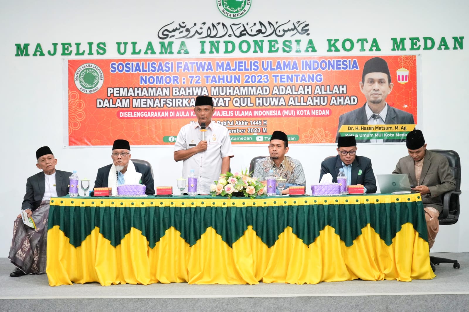 globalcybernews.com-Pemko Medan mengapresiasi sekaligus menyambut baik diselenggarakanya sosialisasi Fatwa Majelis Ulama Indonesia (MUI) No 72 tahun 2023 yang membahas tentang pemahaman Muhammad adalah Allah dalam penafsiran ayat Qul Huwa Allahu Ahad.