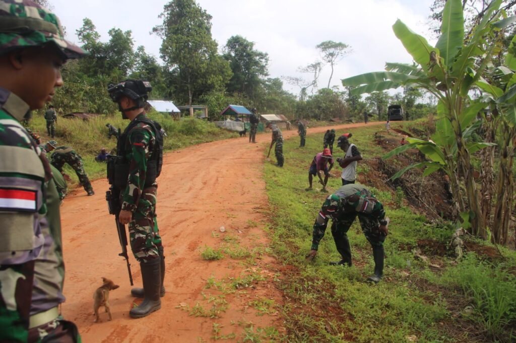 globalcybernews.com -Boven Digoel~Satgas Pamtas Statis RI -PNG Yonif 111/Karma Bhakti dalam melaksanakan tugas Pengamanan Wilayah Perbatasan Negara Republik Indonesia Papua Nugini ( RI-PNG) dibawah Kolakops Korem 174 Anim Ti Waninggap melaksanakan kegiatan Karya Bakti TNI dengan Komponen masyarakat Pedalaman Kabupaten Boven Digoel Papua Selatan Senin tanggal 06 Nopember 2023.