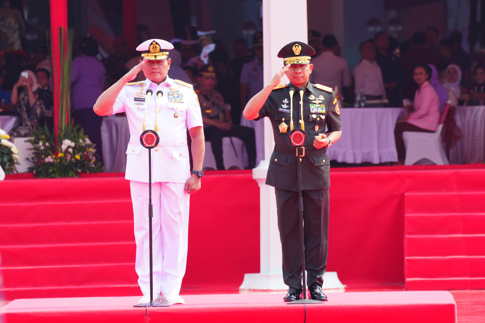 Dalam pelaksanaan upacara tersebut bertindak selaku Inspektur Upacara adalah Laksamana TNI Yudo Margono, S.E., M.M dan Jenderal TNI Agus Subiyanto, dan bertindak sebagai Komandan Upacara Kolonel Laut (P) Sandy Kurniawan yang sehari-hari menjabat sebagai Komandan Lanal Palembang, Upacara Sertijab tersebut ditandai dengan penyerahan Panji TNI “Tri Dharma Eka Karma” dan penandatanganan Naskah Serah Terima Jabatan dari Laksamana TNI Yudo Margono, S.E., M.M kepada Jenderal TNI Agus Subiyanto.