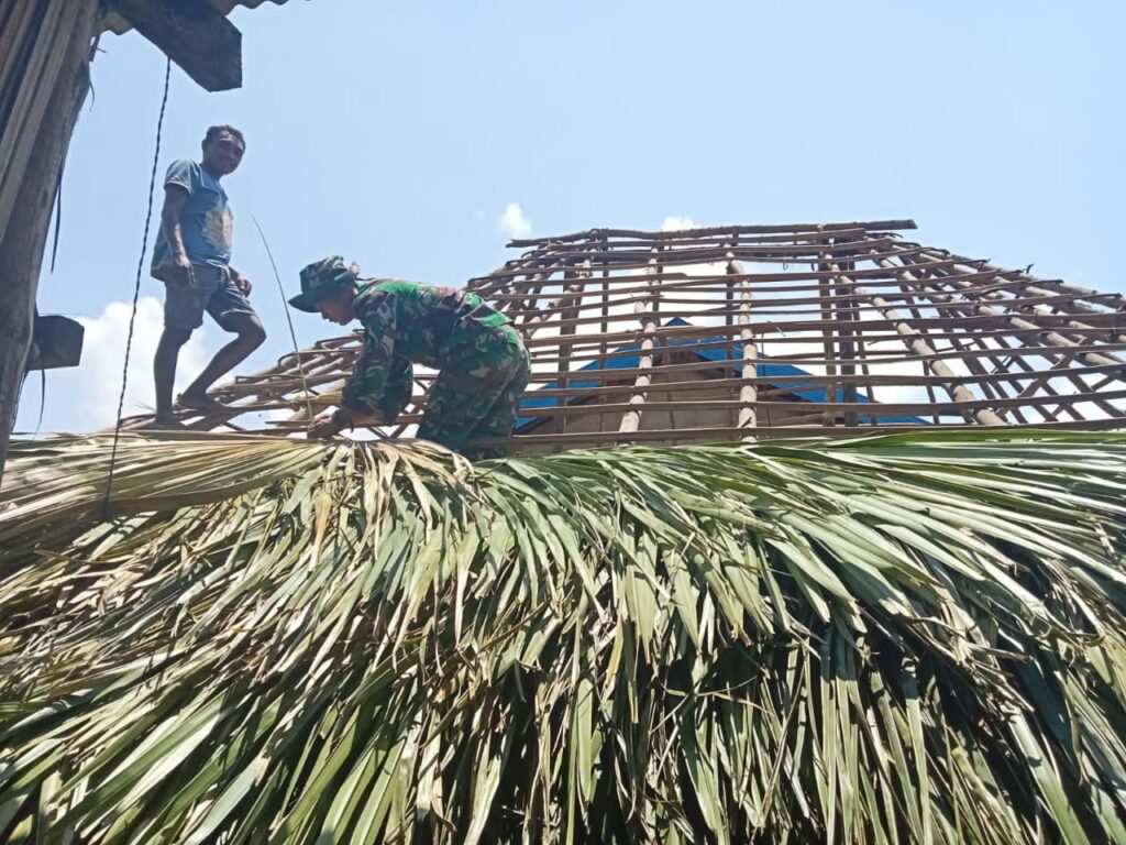 Bangun tali silaturahmi dengan Masyarakat Sekitar, Pos Oepoli Tengah bangun hubungan baik dengan masyarakat dengan ikut membantu pemasangan atap rumah dengan menggunakan Daun Gewang. Daun Gewang sering digunakan sebagai bahan utama dalam pembuatan atap rumah adat atau berbagai struktur bangunan tradisional lainnya. Keunikan daun ini terletak pada kekuatan dan ketahanannya terhadap cuaca dan lingkungan sekitar, menjadikannya pilihan utama untuk melindungi rumah-rumah tradisional dari panas, hujan, dan angin.