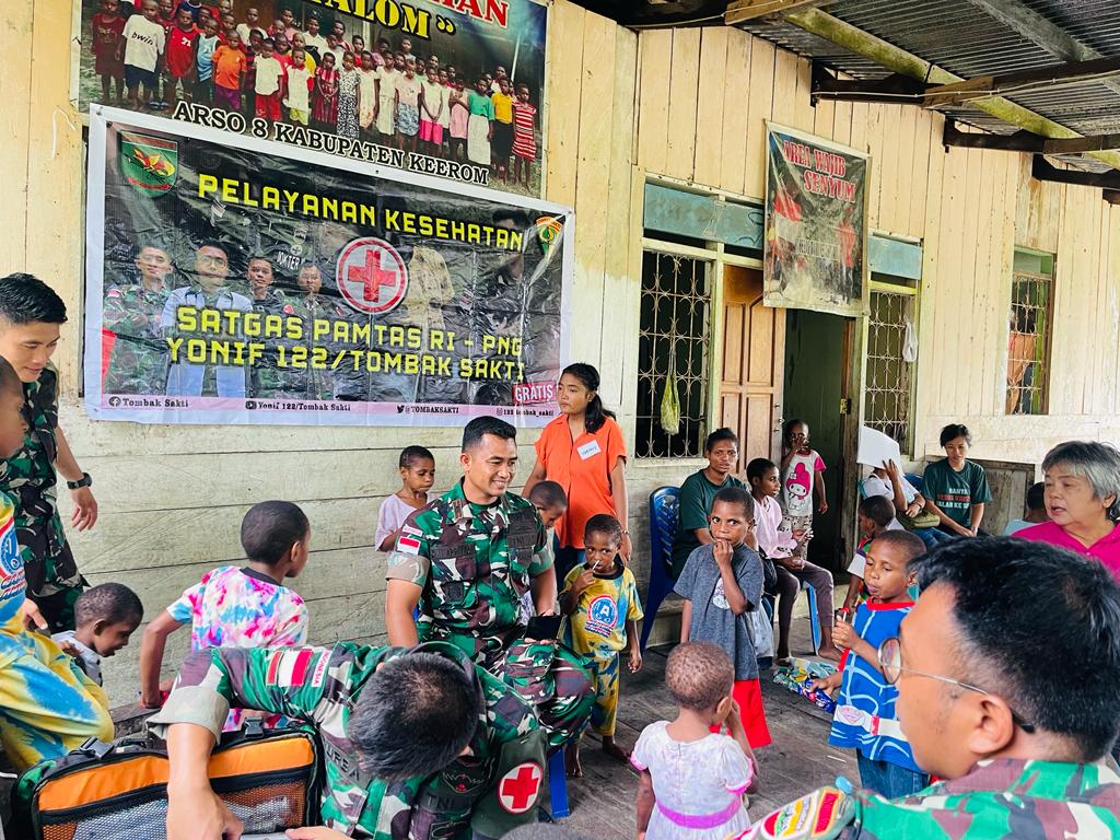 Seperti penekanan Dansatgas Mayor Inf Diki Apriyadi, S, Hub.Int, tugas pokok Satgas Yonif 122/Tombak Sakti menjaga keutuhan wilayah perbatasan darat RI-PNG, juga mempunyai tugas tambahan yaitu seluruh prajurit melaksanakan kegiatan teritorial yang bersifat membangun, melayani, dan mengayomi masyarakat yang membutuhkan bantuan di tiap-tiap pos masing-masing.
