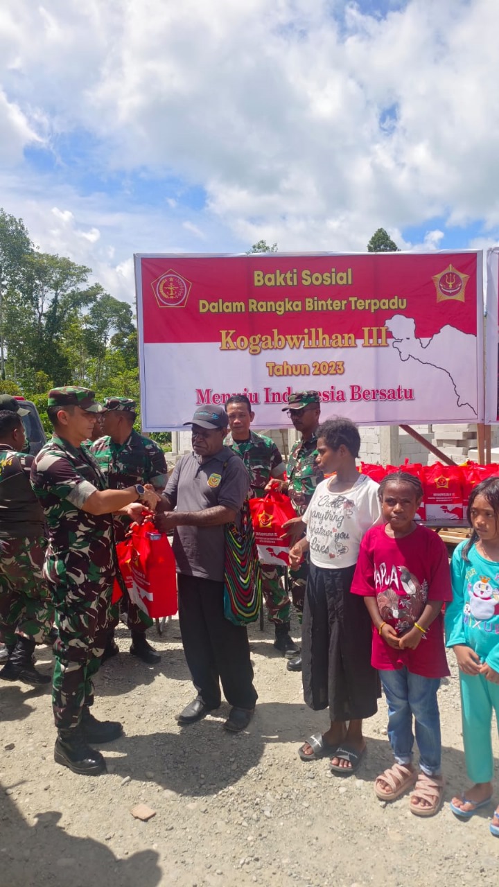 “Terima kasih kepada TNI dengan adanya kegiatan Baksos yang diselenggarakan oleh Kogabwilhan III, ini sangat membantu kesulitan masyarakat di akhir Tahun 2023 dan sebentar lagi kita semua menyambut hari Natal dan Tahun baru 2024, besar harapan kami dengan keberadaan Bapak-bapak TNI di sini akan menjadikan masyarakat Mimika lebih maju, kami butuh bantuan Bapak TNI, semoga Tuhan berkati,” ujarnya.