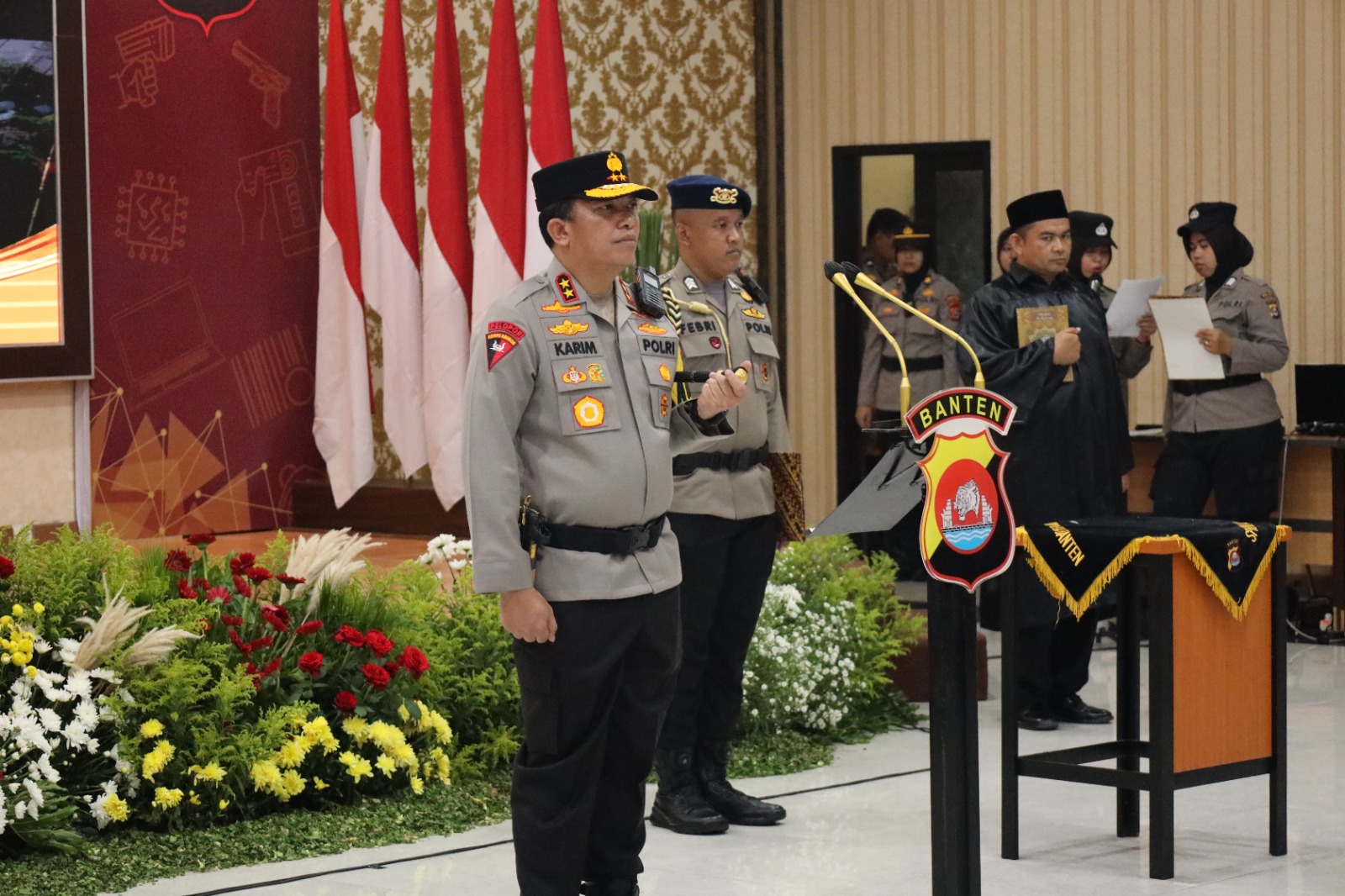 Abdul Karim mengucapkan terimakasih atas dedikasi dan loyalitas tinggi kepada para pejabat lama saat bertugas di Polda Banten dan mengucapkan selamat atas penugasan di jabatan baru masing-masing. “Saya ucapkan terimakasih dan penghargaan yang setinggi-tingginya kepada para pejabat lama atas dedikasi dan loyalitas tinggi selama berdinas di Polda Banten, selamat melaksanakan tugas di tempat yang baru, kami mendoakan semoga kesuksesan yang telah diraih dapat terus menghiasi lembaran karir pengabdian rekan-rekan sekalian,” kata Abdul Karim.
