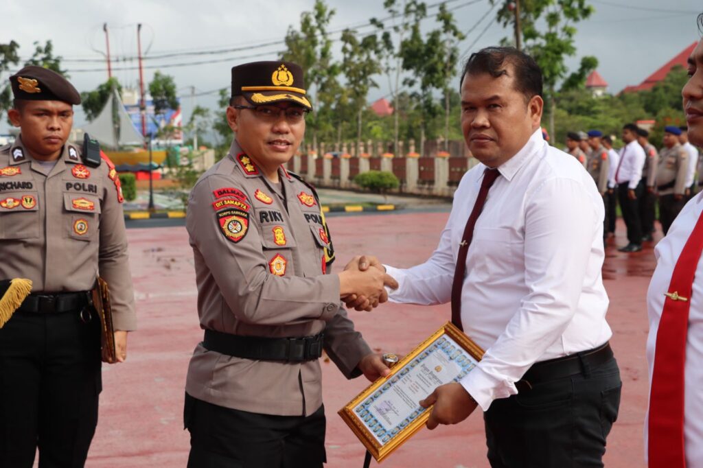 globalcybernews.com – Bintan, Kepri — Kepala Kepolisian Resor Bintan AKBP Riky Iswoyo, S.I.K., M.M. memimpin upacara Hari Kesadaran Nasional yang dilaksanakan di lapangan Bhayangkara Polres Bintan, saat Upacara tersebut Kapolres Bintan memberikan penghargaan kepada personel yang berprestasi, Rabu (17/1/2024).