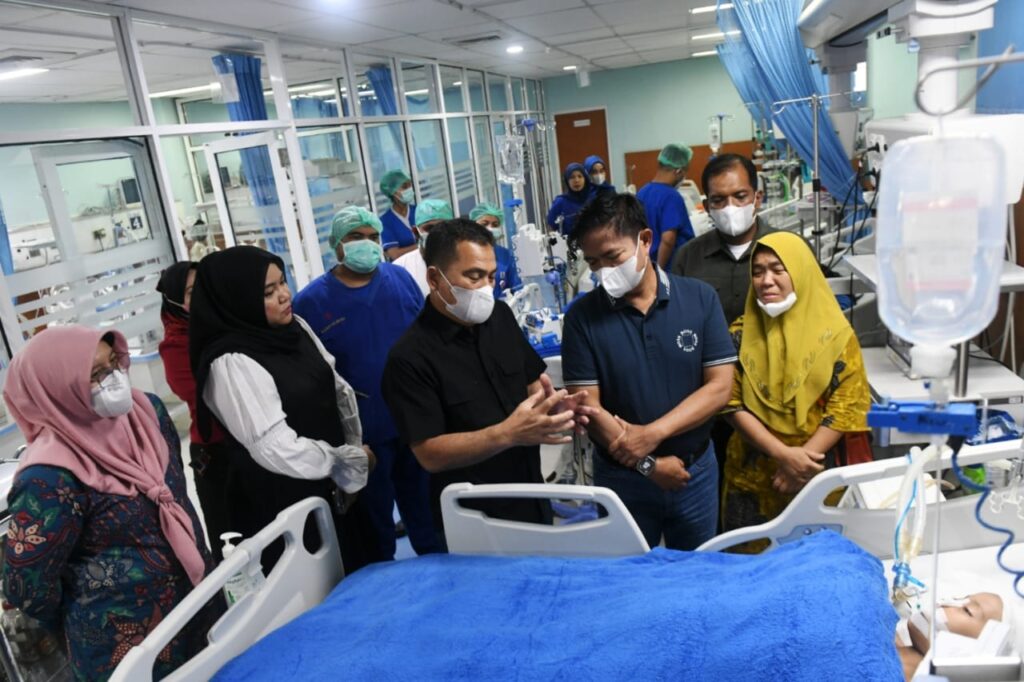 Bersama Kepala Dinas Kesehatan Sumut Alwi Mujahit Hasibuan, Direktur Rumah Sakit Haji Rehulina Ginting, Kepala Biro Umum Dedi Jaminsyah Putra Harahap, dan Kepala Biro Adpim Moettaqien Hasrimi, Pj Gubernur Sumut melihat kondisi Sakira Nayla Lubis yang masih terbaring koma di Ruang NICU.