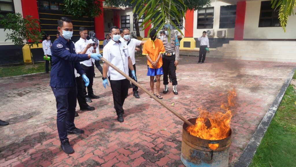 globalcybernews.com -Batam – Dalam upaya mendukung program P4GN (Pencegahan Pemberantasan Penyalahgunaan Dan Peredaran Gelap Narkotika) di wilayah Kepulauan Riau, Direktorat Reserse Narkoba Polda Kepri melakukan pemusnahan barang bukti narkoba dari kasus Tindak Pidana Narkoba yang terjadi di wilayah Kepulauan Riau periode bulan Februari 2024. Laporan Polisi Nomor : LP-A/15/I/2024/SPKT.Ditresnarkoba/Polda Kepulauan Riau, tanggal 27 Januari 2024 sebanyak 935.41 (sembilan ratus tiga puluh lima koma empat satu) gram dengan jumlah tersangka sebanyak 2 (dua) orang inisial SO alias S dan inisial MNS alias N serta berdasarkan surat hasil pengujian Laboratorium BPOM Batam, surat dari Kejaksaan Negeri Batam tentang Ketetapan status barang sitaan Narkotika, maka pada hari ini kita laksanakan pemusnahan barang bukti Narkotika jenis Ganja. Hal tersebut disampaikan oleh Wadirresnarkoba Polda Kepri Akbp Tidar Wulung Dahono, S.H., S.I.K., M.H., didampingi Kepala BNN Kota Batam AKBP Jamaludin SN, S.H., M.H., perwakilan BPOM Batam Bapak Musthofa Anwari, perwakilan Kejaksaan Negeri Batam, perwakilan Pengadilan Negeri Batam, dan PS. Paur 2 Subbid Penmas Bidhumas Polda Kepri Ipda Mahardika Sidik, S.Kom., M.M. Rabu (7/2/2024).
