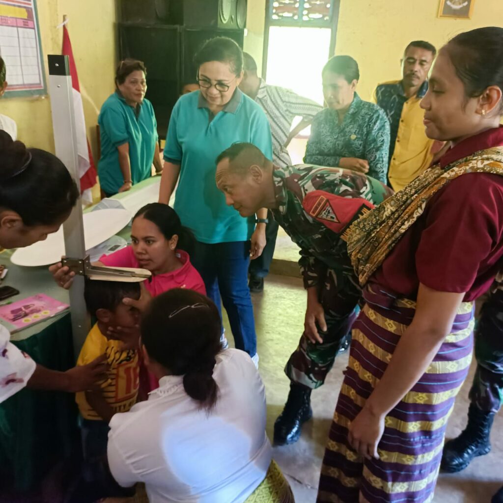 globalcybernews.com -Inbate, NTT – Dalam mencegah Stunting di daerah perbatasan, Pos Inbate Satgas Yonkav 6/Naga Karimata bersama dengan Ibu Bupati TTU Dra. Elvira Berta Maria Juandi Ogom beserta Jajaran laksanakan operasi Timbang Balita, Penanaman Pohon di Desa Inbate, Kec. Bikomi Nilulat, Kab. TTU, Prov. NTT. (18/2/24)