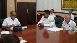 Pj Bupati Langkat H. M. Faisal Hasrimy, AP., M.Ap menerima audiensi dari PMI Kabupaten Langkat bertempat di Ruang Kerja Kantor Bupati Langkat, Rabu (13/03/2024).