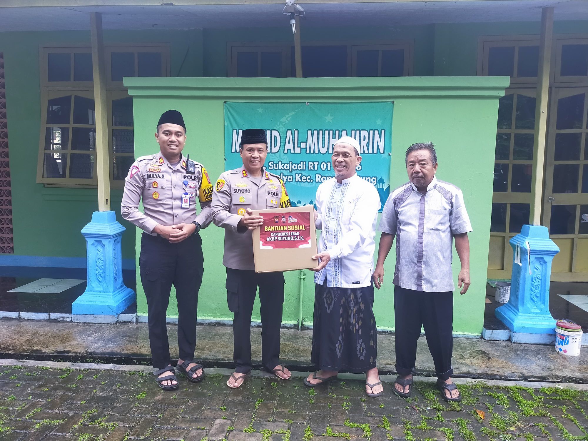 Bantuan ini diterima langsung oleh H. Nur Jaya, Ketua DKM Masjid Al Muhajirin, yang merasa bersyukur atas kepedulian dari Kapolres Lebak,