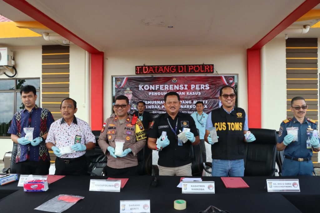 globalcybernews.com -Bintan, Kepri — Dalam rangka menciptakan situasi Kamtibmas di Kabupaten Bintan agar tetap kondusif dari penyalahgunaan dan peredaran Narkotika, Polres Bintan kini kembali melaksanakan Konferensi Pers pemusnahan Barang Bukti sebanyak 1Kg Narkotika jenis Sabu-Sabu pada Jumat (22/3/2024).