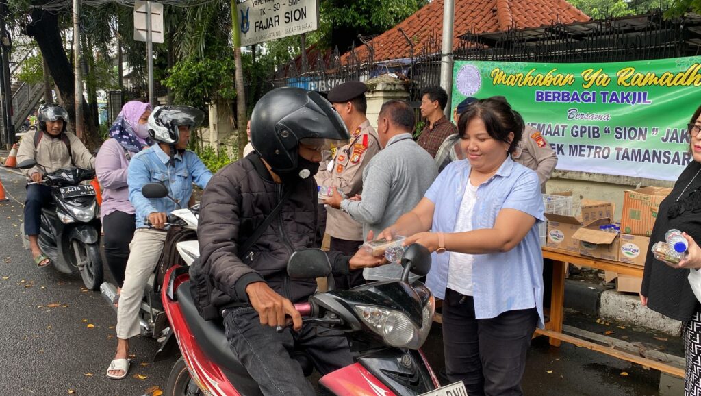 Majelis Jemaat GPIB Sion Jakarta, di bawah pimpinan Pdt. Engeline Rumanjar dan jajaran pengurus gereja, berkolaborasi dengan Polsek Metro Tamansari dalam membagikan makanan takjil untuk berbuka puasa umat Islam yang sedang menjalankan ibadah puasa.