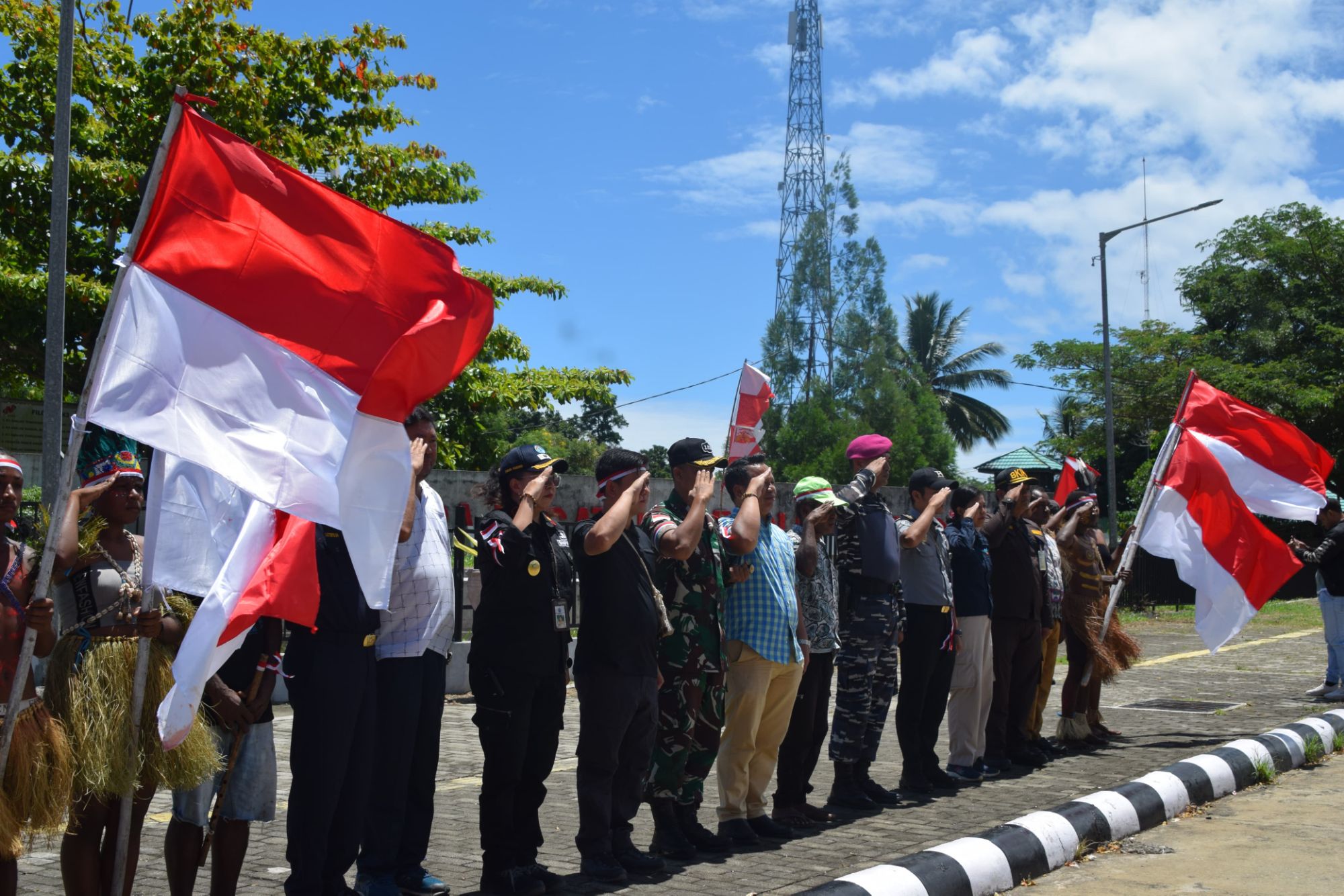Wujudkan Papua, Damai, Tentram, Dan Cinta tanah air, Satgas Yonif 122/TS Gelar Pengibaran Bendera Merah Putih Sepanjang 1 KM di Perbatasan Skouw RI-PNG