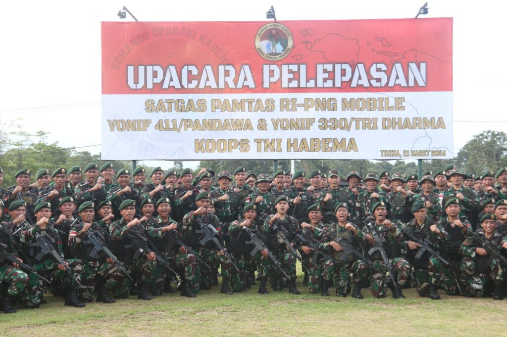 Pangkoops TNI mengucapkan selamat dan terimakasih kepada seluruh prajurit Yonif 330 Tri Dharma yang telah melaksanakan tugasnya dengan sangat baik. “Selamat menjalani purna tugas. Terimakasih atas pengabdian kalian yang sangat luarbiasa. Keberhasilan yang telah kalian raih menunjukkan bahwa kalian adalah prajurit yang memegang prinsip. Tepuk tangan buat kalian semua”, ucapnya.