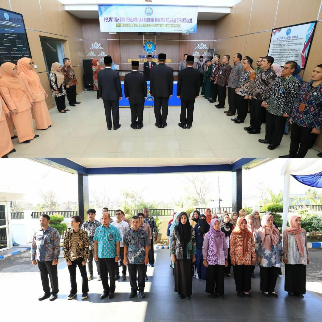 globalcybernews.com -Kepala Badan Narkotika Nasional Provinsi (BNNP) Aceh, Brigjen Pol. Rudy Ahmad Sudrajat, S.I.K., M.H mengambil sumpah dan melantik 4 Pejabat di lingkungan Badan Narkotika Nasional Provinsi Aceh, pada Kamis (28/3/2024).