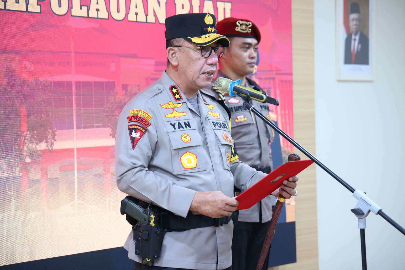 globalcybernews.com -Batam – Kapolda Kepri Irjen. Pol. Drs. Yan Fitri Halimansyah, M.H., pimpin upacara serah terima dan pelantikan jabatan Kayanma Polda Kepri, yang turut dihadiri oleh Wakapolda Kepri Brigjen. Pol. Asep Safrudin, S.I.K., M.H., Irwasda Polda Kepri, Pejabat Utama Polda Kepri di Ruang Rapat Utama Polda Kepri. Kegiatan ini dilaksanakan menindaklanjuti berdasarkan Surat Telegram Kapolri Nomor : STR/179/III/2024 tanggal 27 Maret 2024 tentang Alih Tugas/Mutasi jabatan Pejabat Utama Polda Kepri. (2/4/2024).