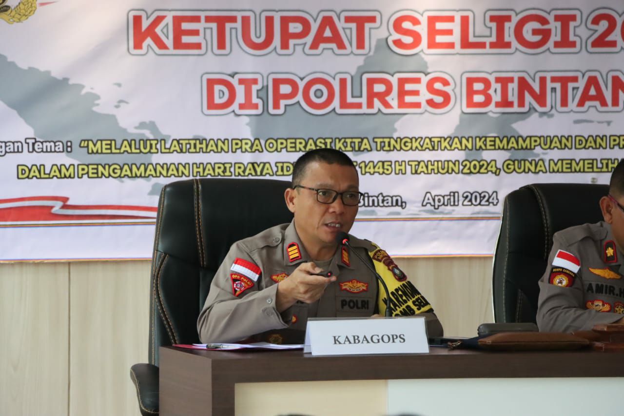 Latpraops dipimpin oleh Wakapolres Bintan didampingi Kabagops serta dihadiri oleh seluruh personil Polres Bintan yang terlibat dalam Operasi Ketupat Seligi 2024.