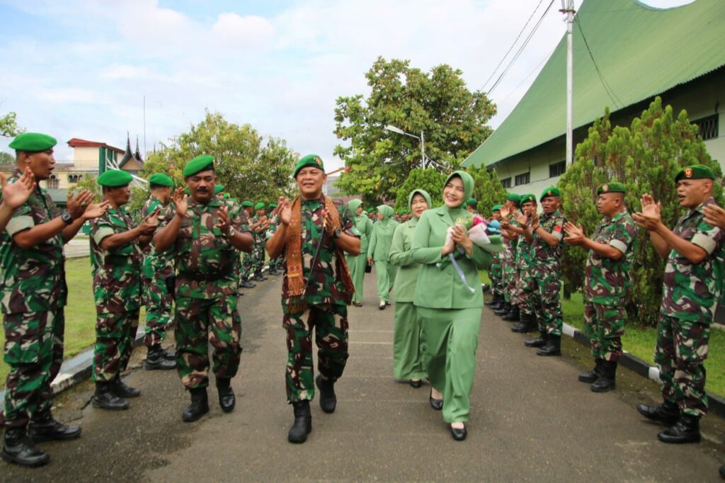 Komandan Korem 032/Wirabraja didampingi Ketua Persit KCK Koorcab Rem 032 PD I/BB Ny. Evidha Yani Obersyl tersebut disambut hangat oleh seluruh prajurit Kodim 0309/Solok di makodim 0309/Solok.