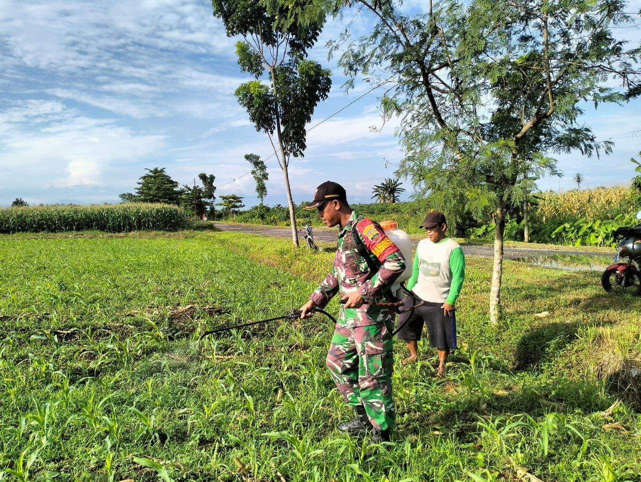 globalcybernews.com -Selesai —– Serma Sugiharto Babinsa Koramil 02/Selesai Kodim 0203/Langkat bantu petani untuk menyemprot rumput yg berada ditanaman jagung dilahan milik Bapak Anto dengan luas lahan lebih kurang 9 rante bertempat di Dusun 2 Desa Sei Limbat Kecamatan Selesai Kabupaten Langkat, (Selasa 23-04-2024).