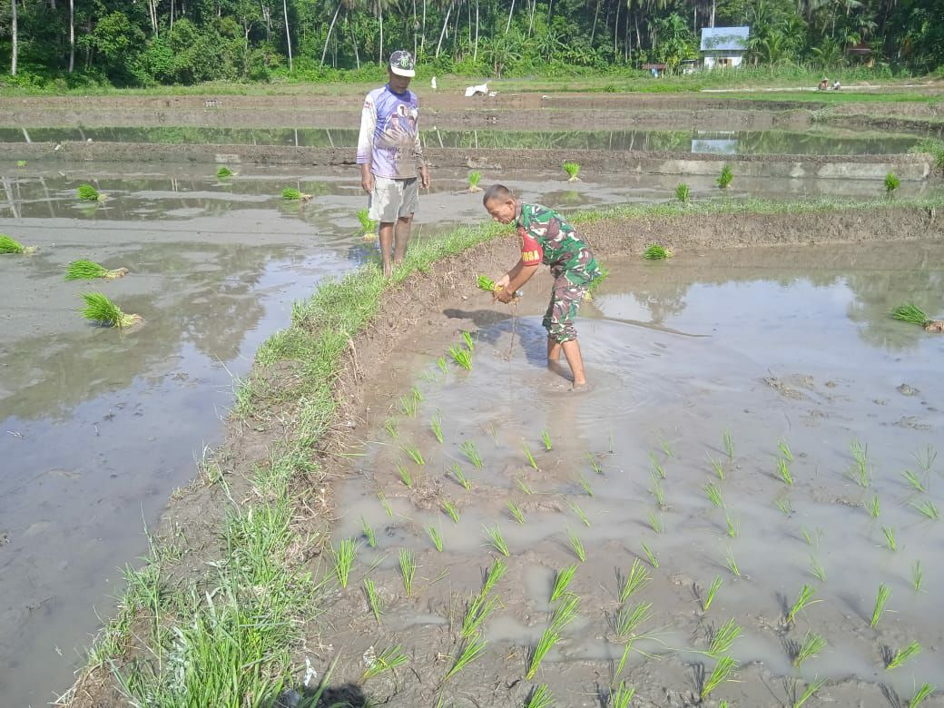 Kegiatan pendampingan menanam padi di sawah yang dilaksanakan Babinsa Serka Yonedi Chaniago adalah cara lebih cepat membantu petani untuk mempercepat Panen Warga.