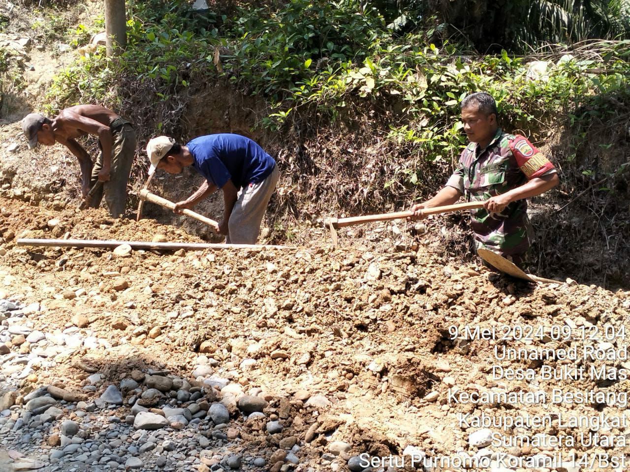 Sementara itu, Kepala Desa Bukit Mas, menyampaikan terima kasih atas kehadiran Babinsa pada karya bakti atau gotong royong ini.