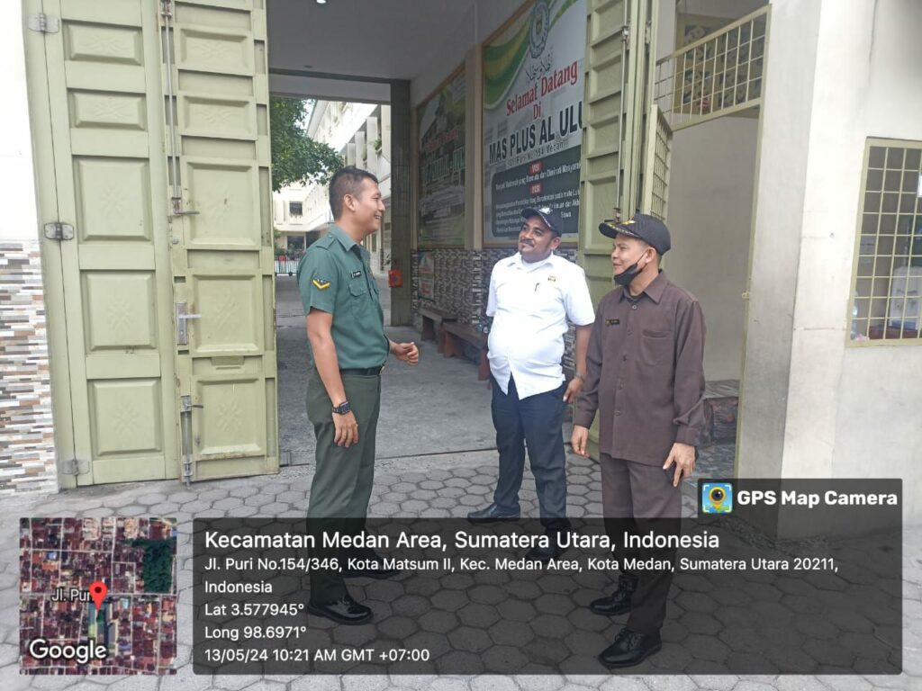 globalcybernews.com  -Medan Area – Upaya meningkatkan kenyamanan di lingkungan sekolah, Serda AF Sitompul Babinsa Kotamatsum II, Koramil 0201-04/MK melaksanakan Komsos dengan penjaga keamanan/security sekolah membahas keamanan lingkungan sekolah, Selasa (13/05/2024).