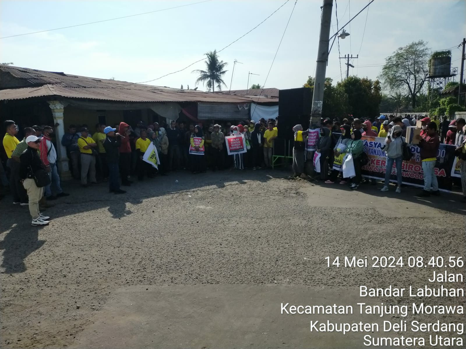 globalcybernews.com -Tanjung Morawa- Babinsa Koramil 0201-16/Tanjung Morawa Kodim 0201/Medan Melaksanakan Monitoring dan pegamanan Aksi Unjuk Rasa yang dilakukan oleh Aliansi Serikat Pekerja/Serikat Buruh PT. SAMAWOOD UTAMA WORKS INDUSTRI di Gg sei belumai Dusun 1 Tanjung Morawa A, Desa Tanjung Morawa A, kab Deli serdang senin (14-05-2024).
