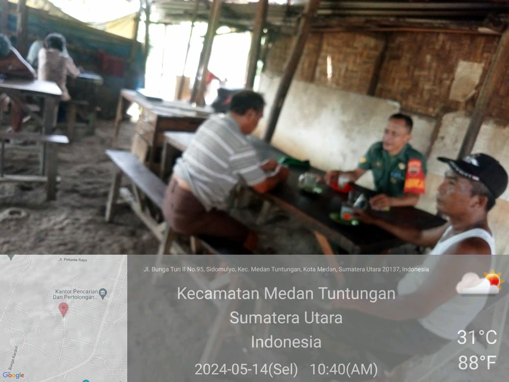 globalcybernews.com  -Medan Tungtungan – Babinsa Koramil 0202-07 MT Serka Mangatas Lubis melaksanakan Komunikasi Sosial (Komsos) bersama masyarakat Kelurahan Sidomulyo Kecamatan Medan Tungtungan disalah satu warung kopi Jln.Bunga Turi II ,Lingkungan IV dengan tujuan menciptakan kedekatan bersama warga binaan, Selasa (14/5/2023).