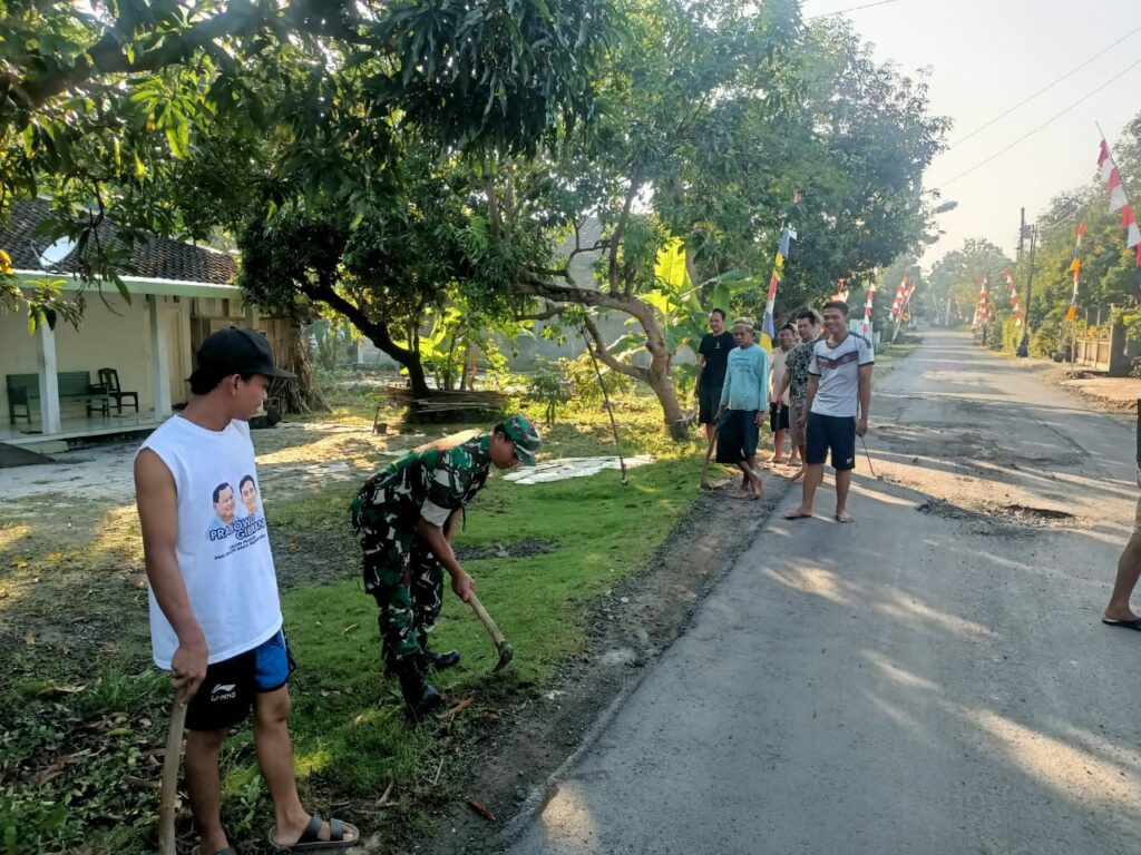 globalcybernews.com  -Sragen, Kegiatan kerja bakti merupakan salah satu bentuk nyata implementasi satuan kewilayahan dalam mewujudkan kemanunggalan TNI dengan rakyat.