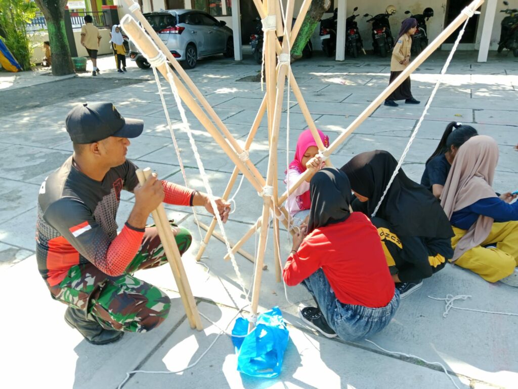Tampak anak-anak sekolah terlihat sangat antusias mengikuti kegiatan tersebut, menurut salah seorang siswa mengaku bahwa ini pertama kalinya mereka mendapatkan materi pengetahuan tali temali, apalagi dari bapak TNI.
