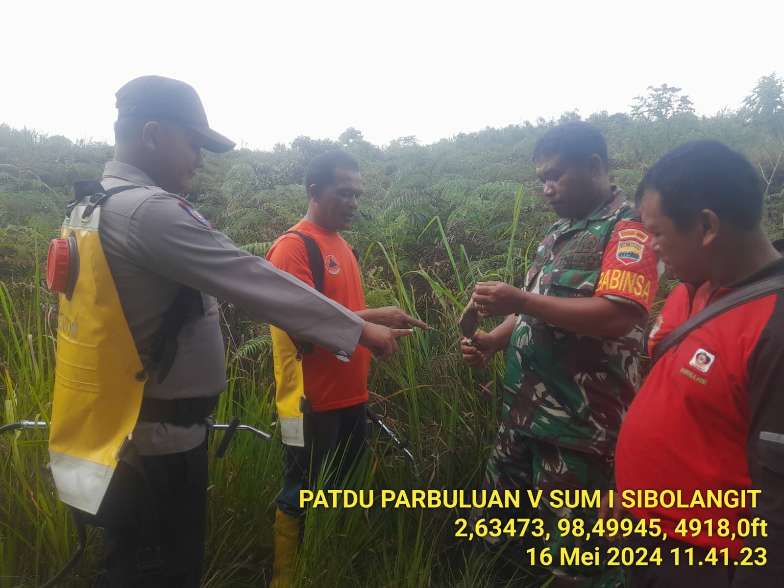 Kegiatan patroli terpadu ini melibatkan A. Sialoho dan E. Suranta dari Manggala Agni, Briptu D. Damanik dari Bhabinkamtibmas, dan N. Sagala selaku Kepala Dusun 2.